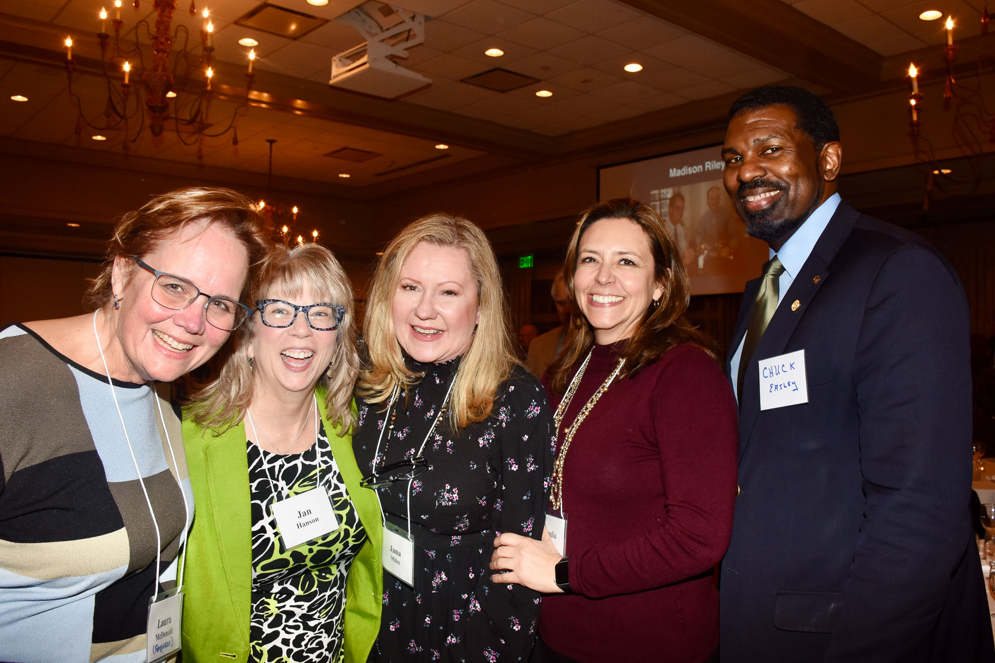 Laure (Ferguson) McDonald, Jan (Watson) Hanson, Claudia Raines and Chuck Easley at the 2020 Alumni Dinner