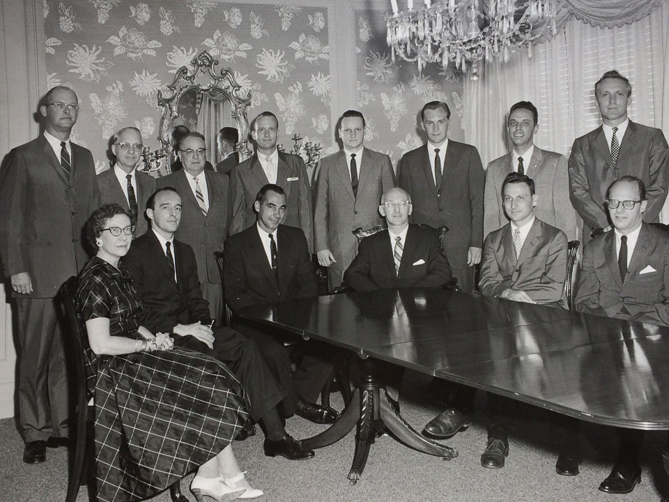 Kurt's all-star KSA management team in June of 1959. In the front row (left to right) Abbie Jean Quick, Dean Vought, Karl Striegel, Kurt Salmon, Jack Ullman, and Ralph Ross. Back row: Ross Runnels, Roy Engman, ???, ???, Phil Lutz, Stig Kry, Bob Heiland, Ted Theodorsen. JTC's comment about the photo summarizes all of our observations: "I have seen this picture many times and again I am struck by the brilliance they represent individually and collectively on many levels. They were each very much distinct individuals but together created something that has already lasted more than 80 years and going strong."